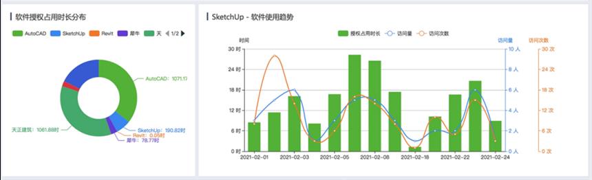 多少套軟件?安裝在多少臺(tái)設(shè)備?活躍度如何?并發(fā)高峰何時(shí)出現(xiàn)?一張圖看得清清楚楚。