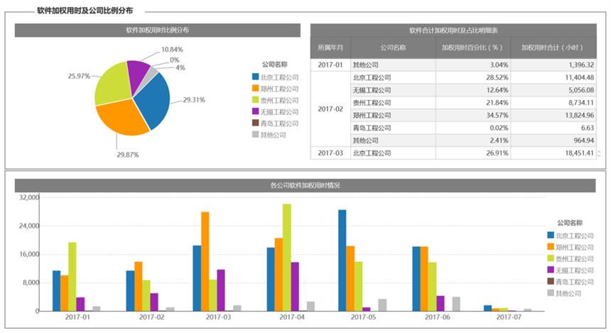 使用場(chǎng)景:在了解各部門(mén)的“用時(shí)高峰”與“授權(quán)緊張”時(shí)段后,信息化部門(mén)可合理安排項(xiàng)目里程碑或技能培訓(xùn),錯(cuò)峰使用,提高整體系統(tǒng)效率。