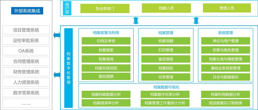 檔案管理模塊涵蓋檔案全生命周期內的收集、整理、保存、查詢、利用、統計、鑒定、銷毀等各類功能。該模塊平移了業界著名的檔案管理軟件Documentum的核心功能,且遵循國家檔案管理標準及數字化檔案館建設要求,并融合了工程設計、建設企業的檔案管理經驗和方法論,可作為知識密集型企業構建知識庫、沉淀Know-how并進行經驗傳承的重要載體。